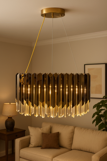 تصميمها العصري المتدرّج يمنح إضاءة دافئة ولمسة ملكية تجعلها مثالية لغرف الطعام والمعيشة الراقية.