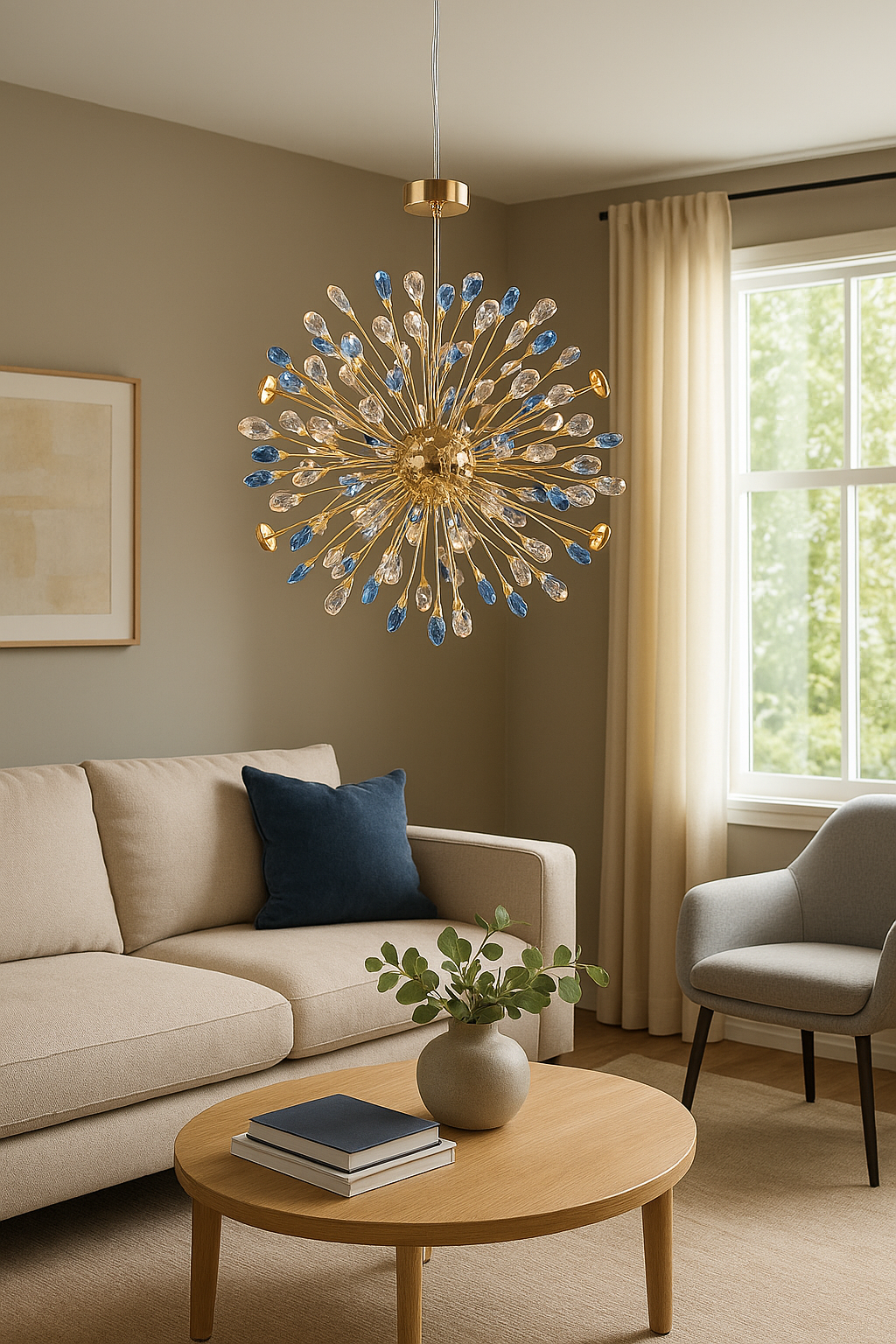 ثريا مودرن تنفجر ضياءً بكريستالات عصفور لتعطي الغرفة لمسة فاخرة تخطف الأنظار.
